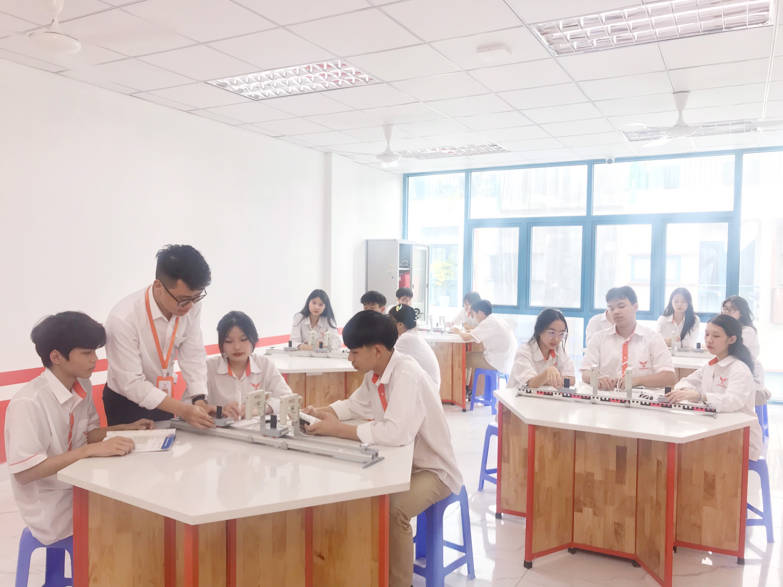 Với phương châm giúp cho học sinh có những trải nghiệm và thực hành bài học, khám phá kiến thức nên Phòng Lý – Công nghệ được thiết kế theo yêu cầu đặc thù, đầu tư đầy đủ những dụng cụ, thiết bị cho các hoạt động của học sinh.