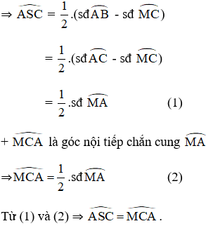 là góc có đỉnh ngoài đường tròn chắn hai cung ![]()