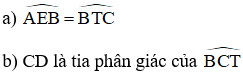 Hai đường thẳng AC và DB cắt nhau tại E. Hai tiếp tuyến của đường tròn tại B và C cắt nhau tại T. Chứng minh rằng: