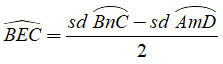 + Hình vẽ: Góc ∠BEC là góc có đỉnh nằm ở bên trong đường tròn chắn hai cung là ![]()