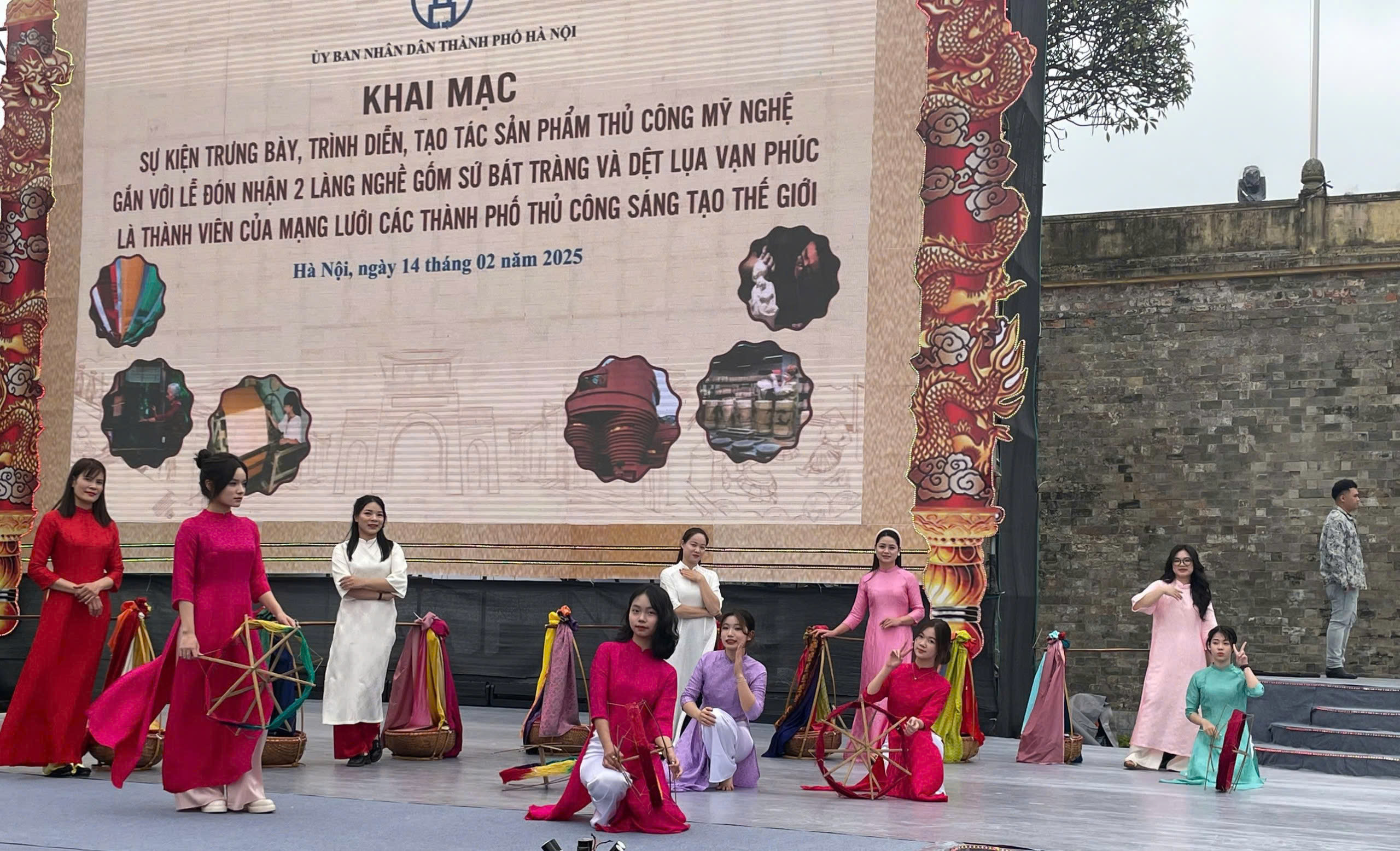 Toàn cảnh sự kiện Lễ đón nhận 2 làng nghề gốm sứ Bát Tràng và dệt lụa Vạn Phúc