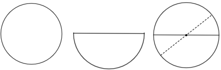 – Gấp tấm bìa sao cho hai phần của hình tròn trùng nhau, nếp gấp là một đường kính.