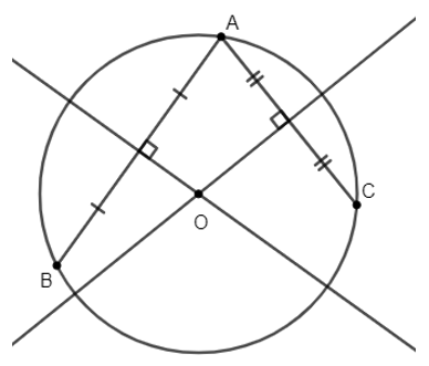 – Vẽ đường trung trực của AB và AC. Giao điểm O của đường trung trực này chính là tâm của hình tròn.