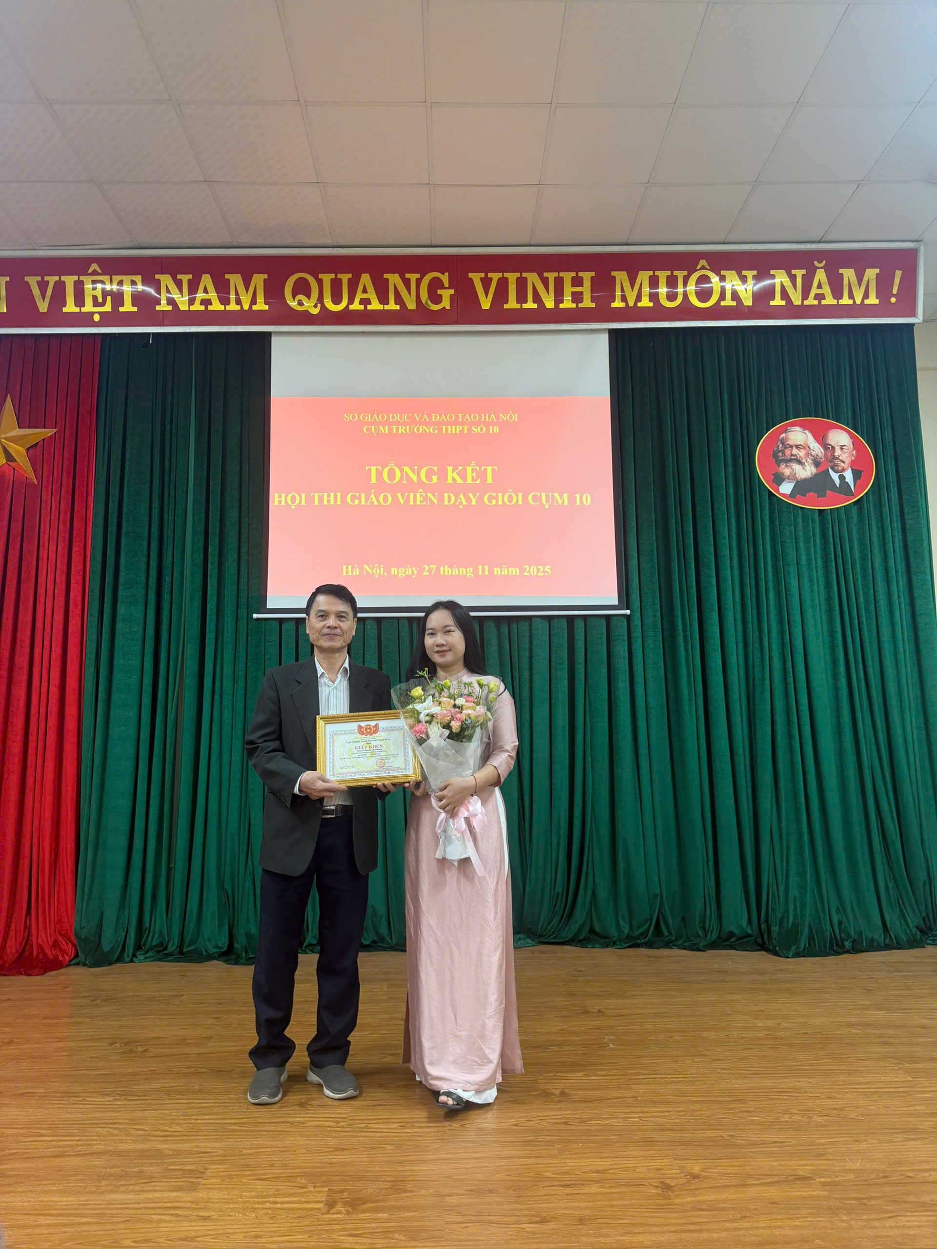 Ngày 27/11/2025, cô Nguyễn Thị Phương, giáo viên môn Ngữ văn của Trường THPT Lê Hồng Phong, đã tham dự Hội thi Giáo viên Giỏi cấp cụm và xuất sắc đạt Giải Nhì trong phần thi giảng dạy môn Ngữ văn
